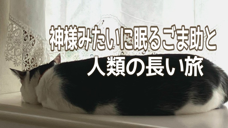 ご先祖さまたちが、首尾よくその立場を築いてくれたおかげで、 ごま助たちは、今日もご飯の心配をすることなく、 窓辺でのんびりと「たぬき寝入り」を決めこんでいる。